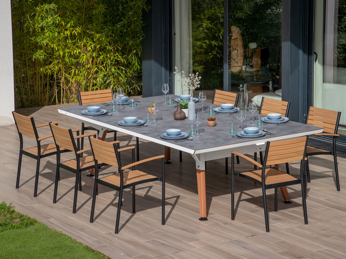 Vsaka podrobnost te nove mize Play-style je bila skrbno preučena, kar je ustvarilo edinstven videz, ki združuje namizni tenis z eleganco in slogom brez ogrožanja kakovosti igranja. Mizo lahko v trenutku predelate v vrtno mizo za kosilo ali piknik.